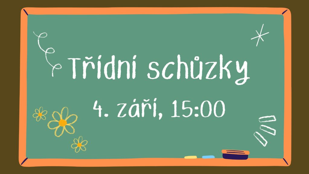 Vážení rodiče, informační třídní schůzky se uskuteční ve čtvrtek 4. září v 15:00 v tělocvičně školy a následně v jednotlivých třídách. Prosíme o Vaši účast, na schůzce se dozvíte důležité organizační informace k průběhu školního