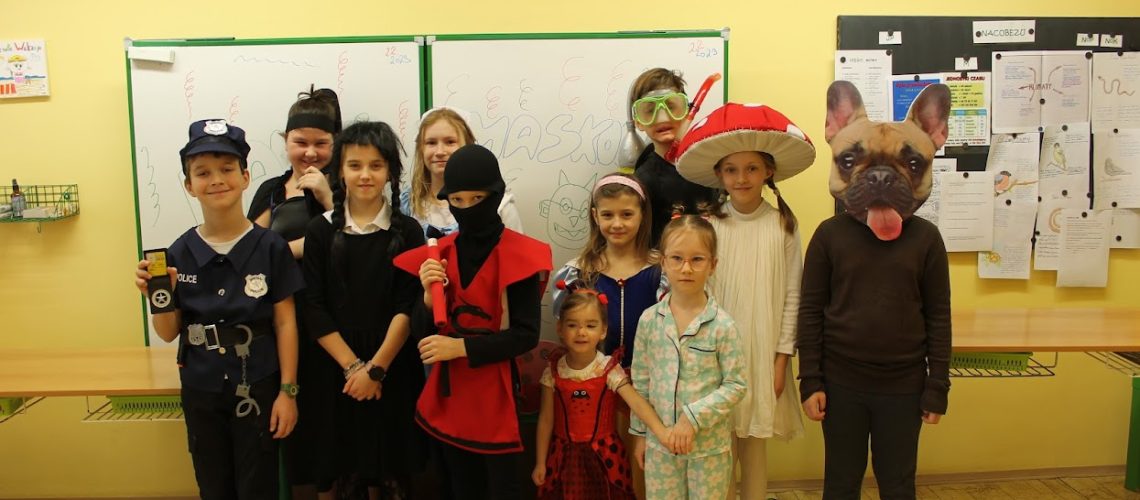 Przedwakacyjny czwartek minął nam w karnawałowej atmosferze. Przebrani w pomysłowe maski świetnie bawiliśmy się i tańczyliśmy, a do zabawy dołączyły też dzieci przedszkola. Nie zabrakło nagród i smakołyków.