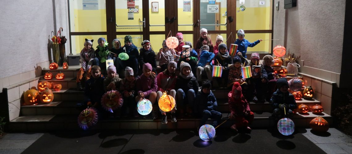 Od pátku 5.11. zdobí vchod naší školy nádherná výzdoba v podobě vydlabaných dýní. V pátek totiž SRPŠ uspořádalo podvečerní rodinnou akci ve stylu Halloweenu.