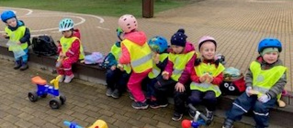 W tygodniu od 17. do 21. kwietnia w naszym przedszkolu rozpoczął się cykl zajęć związanych z bezpieczeństwem na drodze. Dzieci zapoznawały się z elementarnymi zasadami ruchu drogowego. W czwartek pojechaliśmy do miasteczka ruchu drogowego, gdzie uczyliśmy się poprawnego przechodzenia przez jezdnię oraz zasad bezpiecznego poruszania się na rowerze i innych „jeździkach“ na drodze.