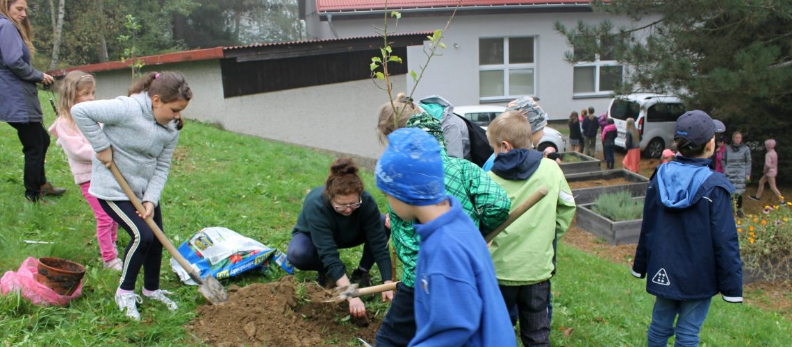 W nagrodę otrzymaliśmy dwa piękne drzewa – jabłonie, które wspólnymi siłami posadziliśmy w naszym ogrodzie szkolnym.