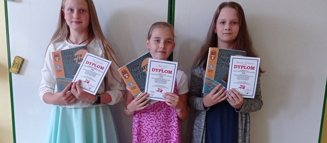 W tym roku szkolnym w międzynarodowym konkursie języka angielskiego FOX 2023 uzyskała dyplom za wynik bardzo dobry oraz zdobyła nagrodę Darja Zalisz. Wyróżnienia otrzymały Aneta Rusz i Dominika Wiszczorová. Gratulujemy i życzymy wielu kolejnych sukcesów.