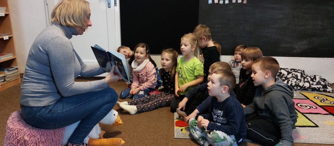 Dnia 28.11.2023 z grupą średniaków i starszaków pojechaliśmy autobusem do Biblioteki w Jabłonkowie. Tam czekała na nas pani bibliotekarka, która oprowadziła nas po bibliotece i poopowiadała nam o tym, co można w niej robić i na czym polega jej praca.