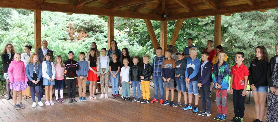 V pondělí 4. září se po dlouhých týdnech ticha naše škola opět naplnila smíchem a hemžením. Se všemi školáky jsme se sešli v altánu, abychom zahájili nový školní rok a především mezi námi slavnostně přivítali naše milé prvňáčky, a také nové paní učitelky. Svou návštěvou nás poctil také místostarosta obce Košařiska, pan Daniel Mazur, který předal prvňáčkům dárečky věnované obcí a také knihovnou Košařiska. Všechny paní učitelky i ostatní pracovnice školy pak potěšil krásnými kytičkami.