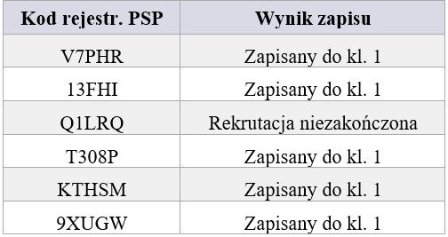 Wyniki zapisów do kl. 1 PSP