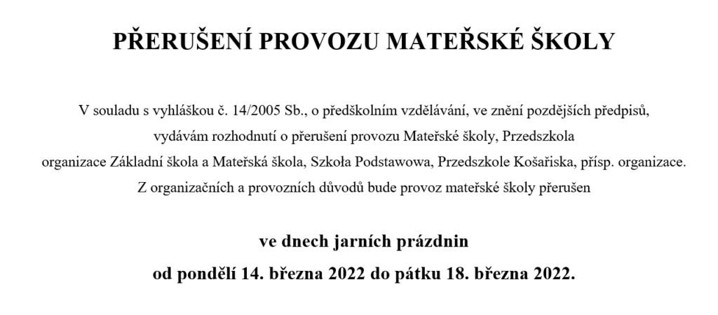Přerušení provozu MŠ – Przedszkola