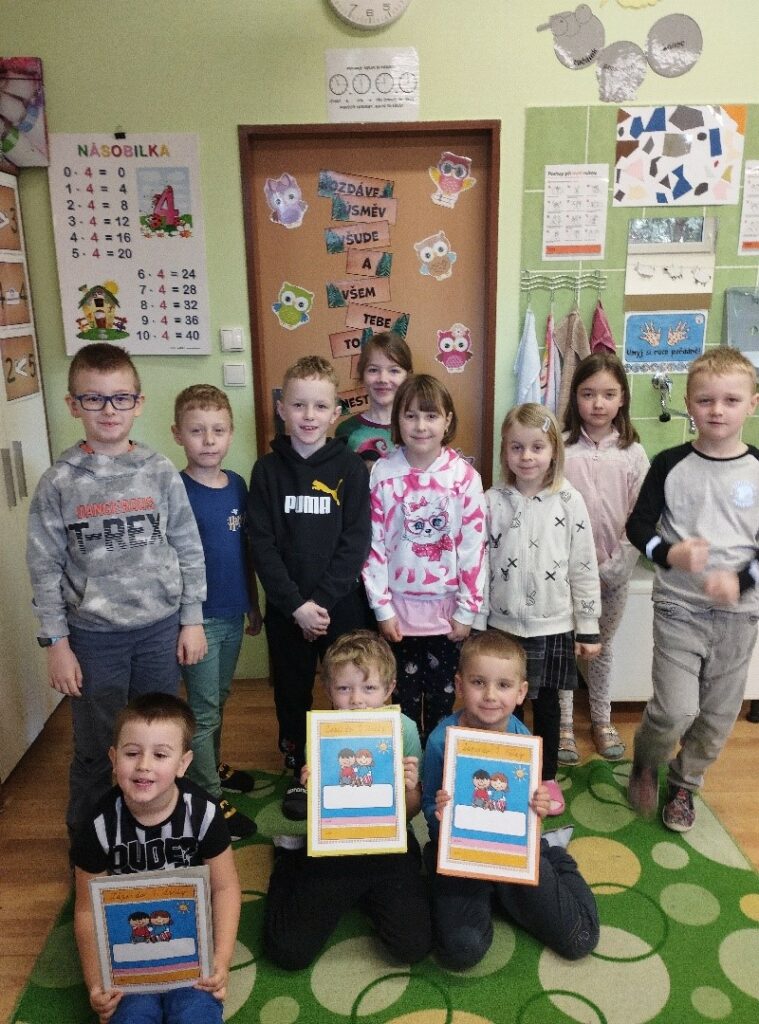 Děti si během návštěvy vyzkoušely zábavnou a poučnou formou, jak to ve škole chodí. Poté společně prvňáčci a druháčci četli pohádku ze Slabikáře – Autem do Austrálie. Děti byly moc šikovné. 😊