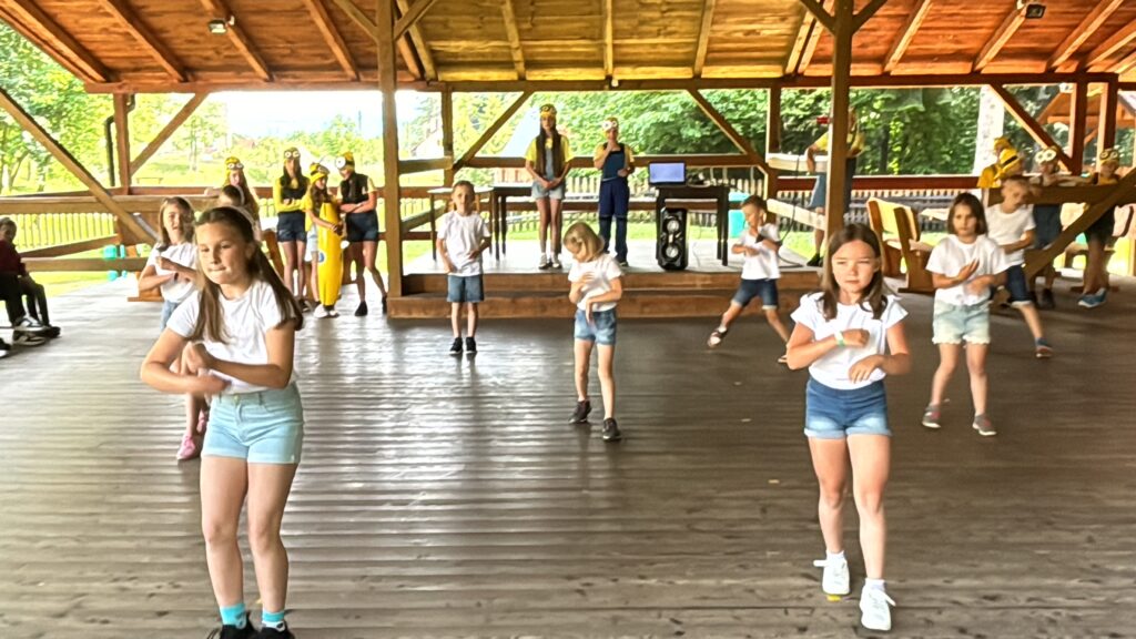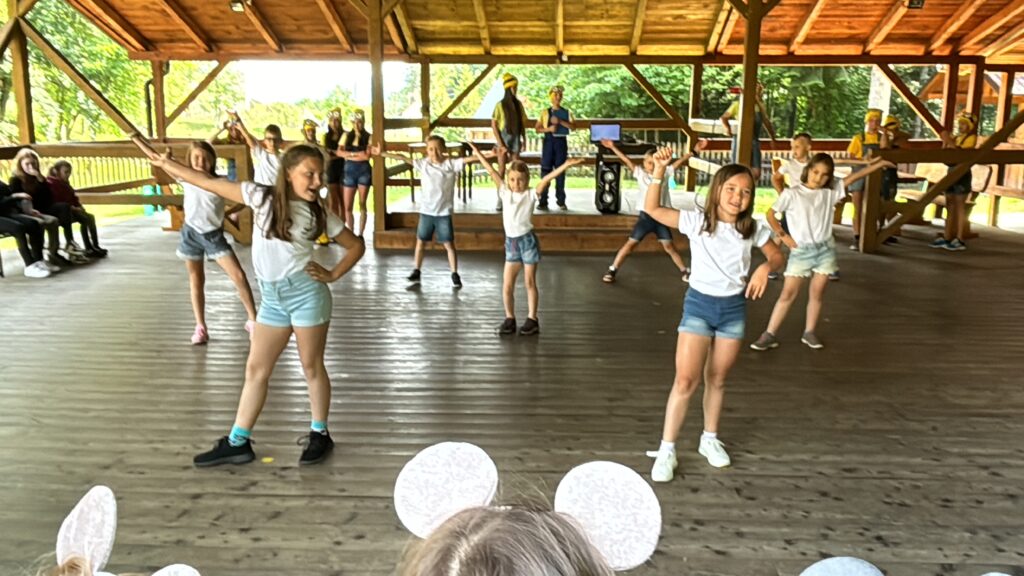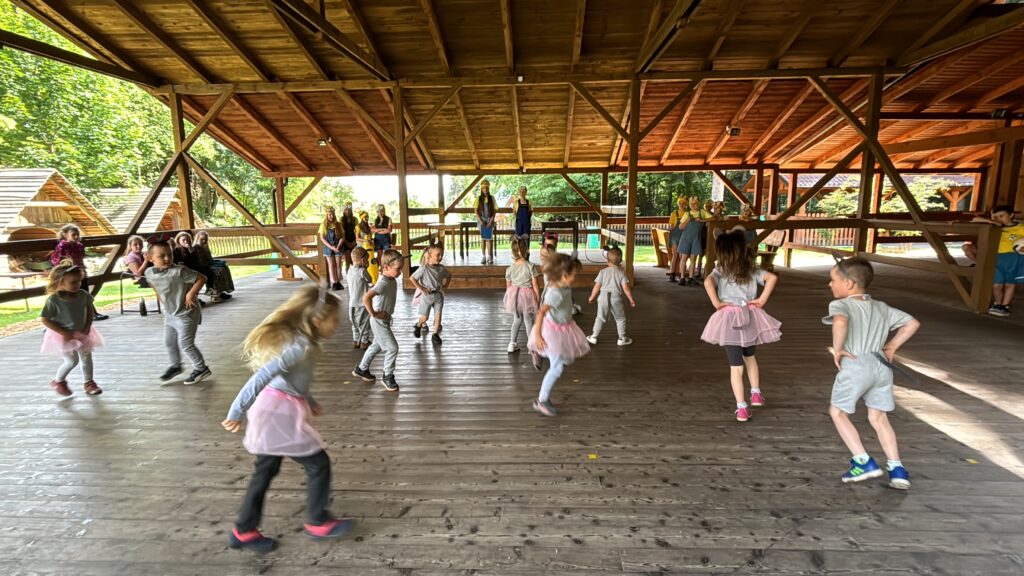 Žáci prvního a druhého ročníku nám potom pod vedením paní učitelky Jany Wrzecionkové předvedli letní diskotékovou inspiraci v jižanských rytmech.
