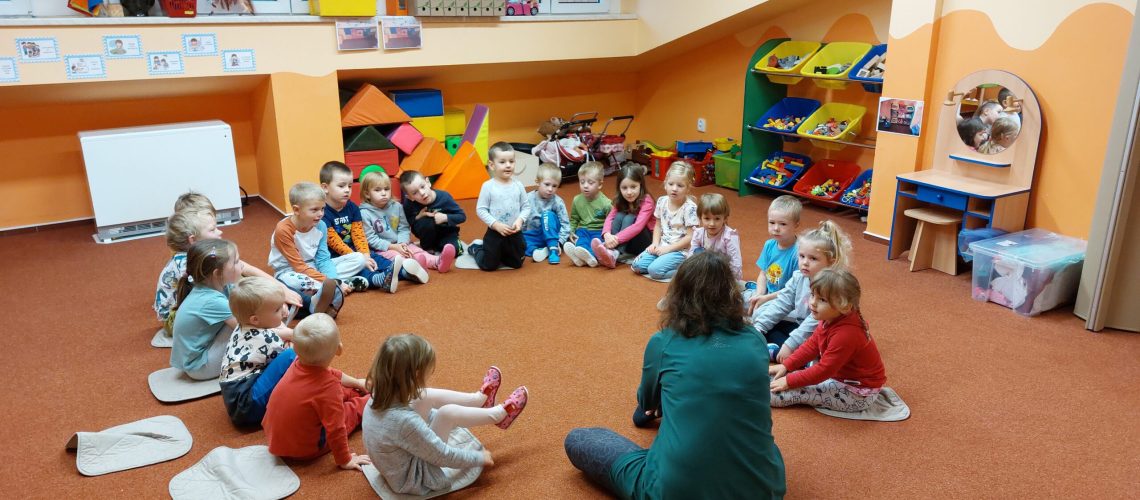 Dne 23.10. 2023 nás mile překvapila svou návštěvou paní knihovnice Marika z třinecké knihovny. Připravila si pro děti povídání o medvědovi, který nechtěl jít v zimě spát.